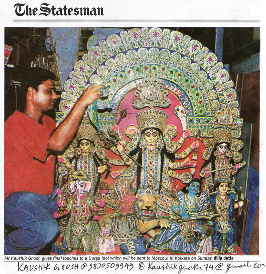 "Mr. Kaushik Ghosh gives final touches to a Durga IDOL which will be sent to Moscow".