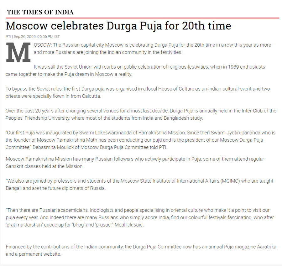 Bengalis mark silver jubilee Durga Puja celebrations in Moscow
