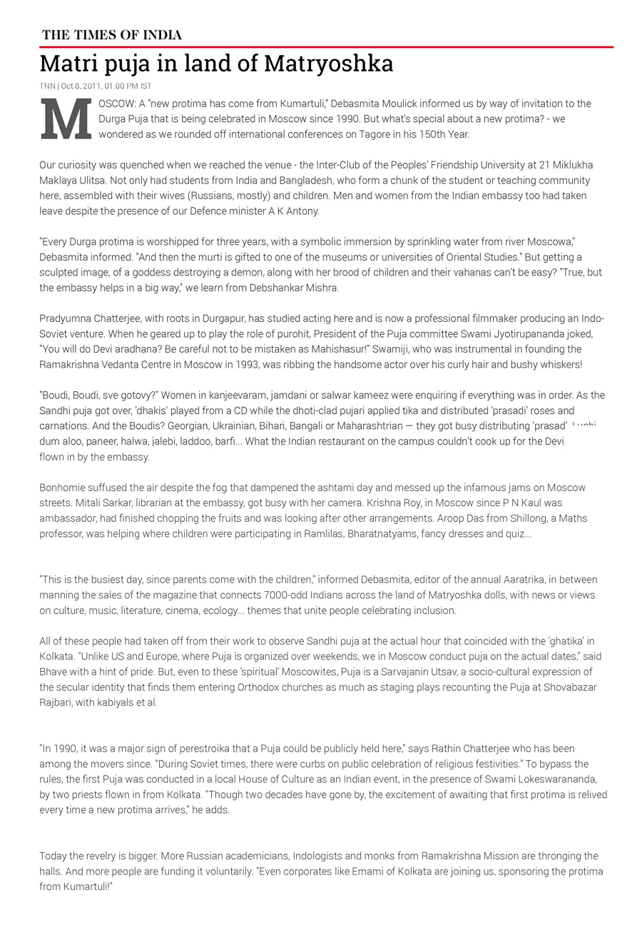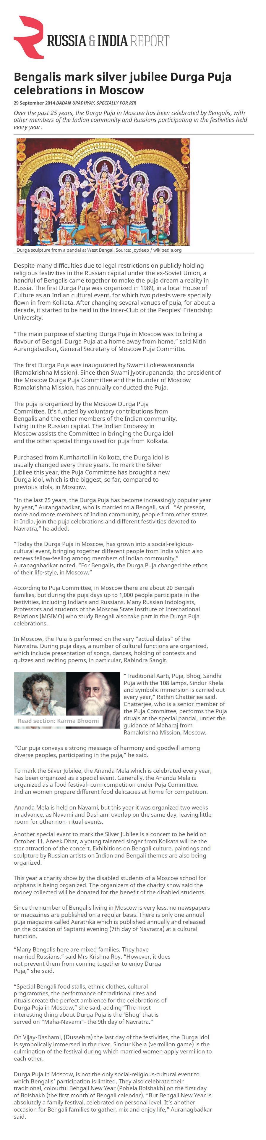 25th Year of Moscow Durga Puja - Prabaser Pujo Parikrama 2014